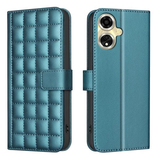 Para Oppo A59 5G Funda de Cuero con Textura Cuadrada (Verde)