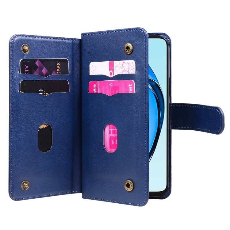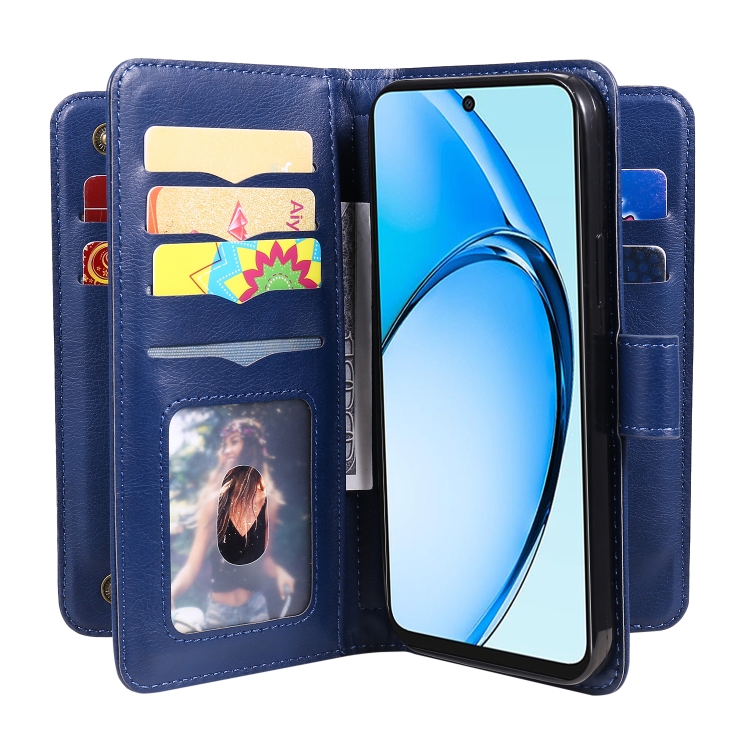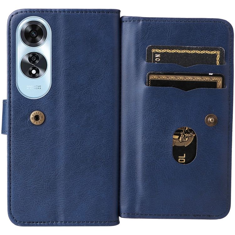 Para Oppo A60 4G Cartera Multifunción con 10 Ranuras para Tarjetas Funda de Cuero para Teléfono (Azul Oscuro)