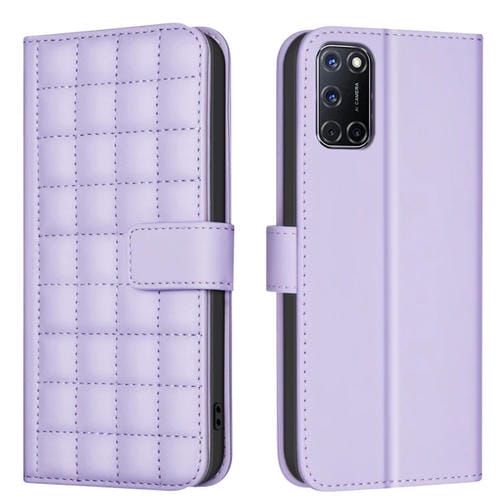 Para Oppo A72 / A52 / A92 Funda de Cuero para Teléfono con Textura Cuadrada (Púrpura)