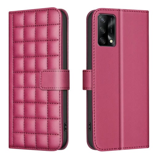 Para Oppo A74 4G / F19 4G Funda de Cuero para Teléfono con Textura Cuadrada (Rojo)