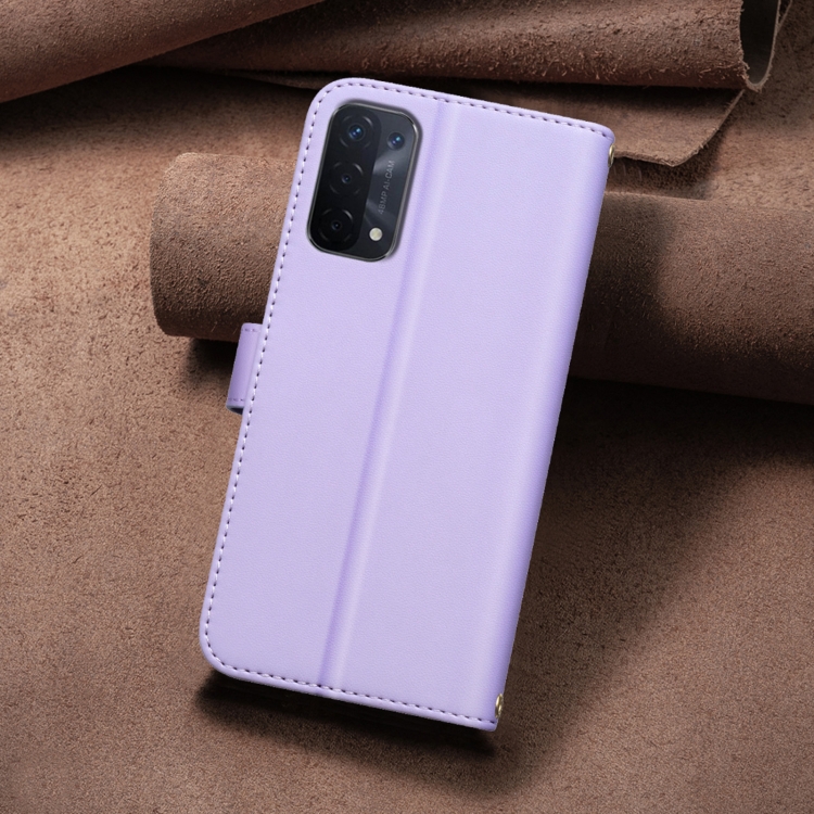 Para Oppo A74 5G / A93 5G / A54 5G Funda de Cuero para Teléfono con Textura Cuadrada (Púrpura)