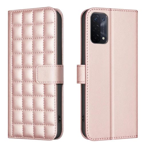 Para Oppo A74 5G / A93 5G / A54 5G Funda para Teléfono de Cuero con Textura Cuadrada (Oro Rosa)