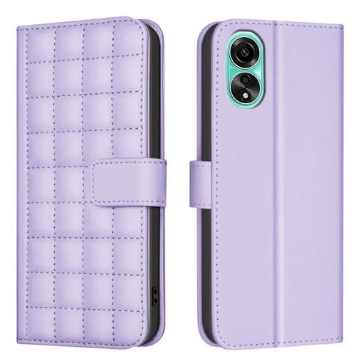 Para Oppo A78 4G Funda de Cuero con Textura Cuadrada (Púrpura)