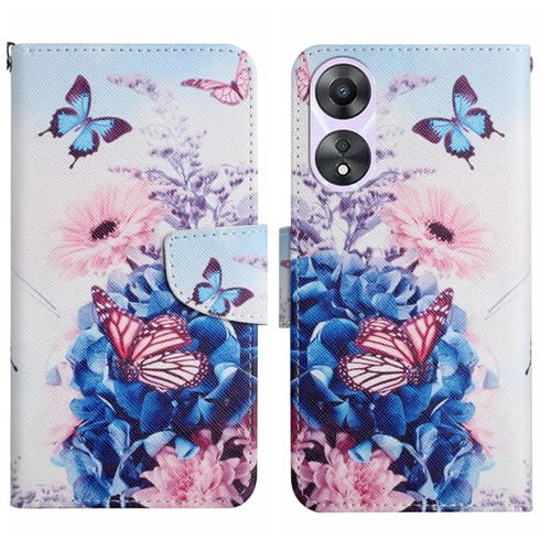 Para Oppo A78 4G Funda de Cuero para Teléfono con Patrón de Dibujo Coloreado (Mariposa Púrpura)