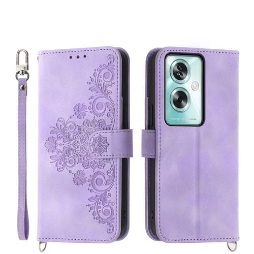 Para Oppo A79 5G Funda de Cuero para Teléfono con Billetera En Relieve y Flores con Sensación de Piel (Púrpura)