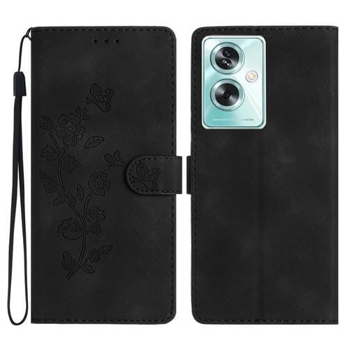 Para Oppo A79 5G Funda de Cuero para Teléfono con Patrón de Estampado de Mariposa y Flor (Negro)