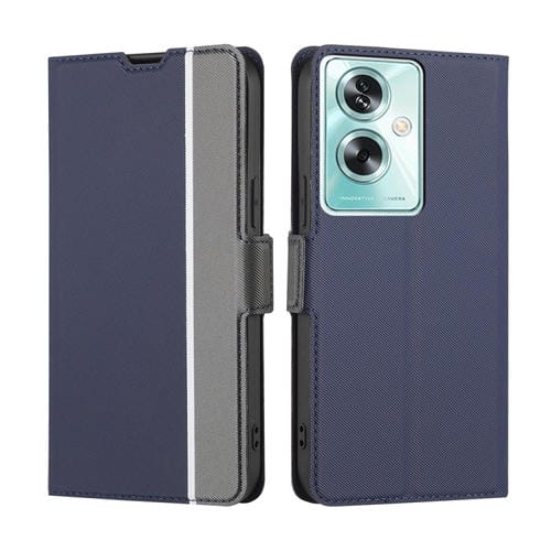 Para Oppo A79 5G Funda de Teléfono de Cuero con Botón Lateral con Textura de Sarga (Azul)