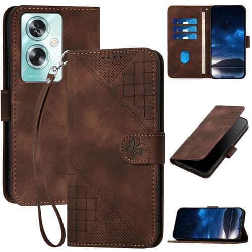 Para Oppo A79 5G Global Yx0080 Grid Butterfly Patrón En Relieve Funda de Cuero con Tapa para Teléfono con Cordón (Café)