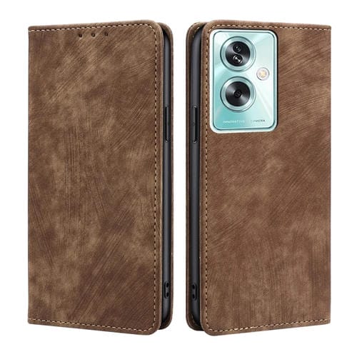 Para Oppo A79 5G Rfid Funda de Teléfono de Cuero Magnético con Cepillo Antirrobo (Marrón)