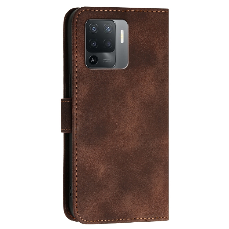 Para Oppo A94 4G / F19 Pro 4G Yx0080 Funda para Teléfono de Cuero con Tapa y Patrón En Relieve de Mariposa En Cuadrícula con Cordón (Café)