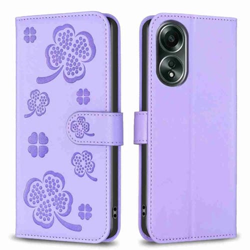 Para Oppo A98 5G Funda para Teléfono de Cuero En Relieve de Cuatro Hojas (Púrpura)