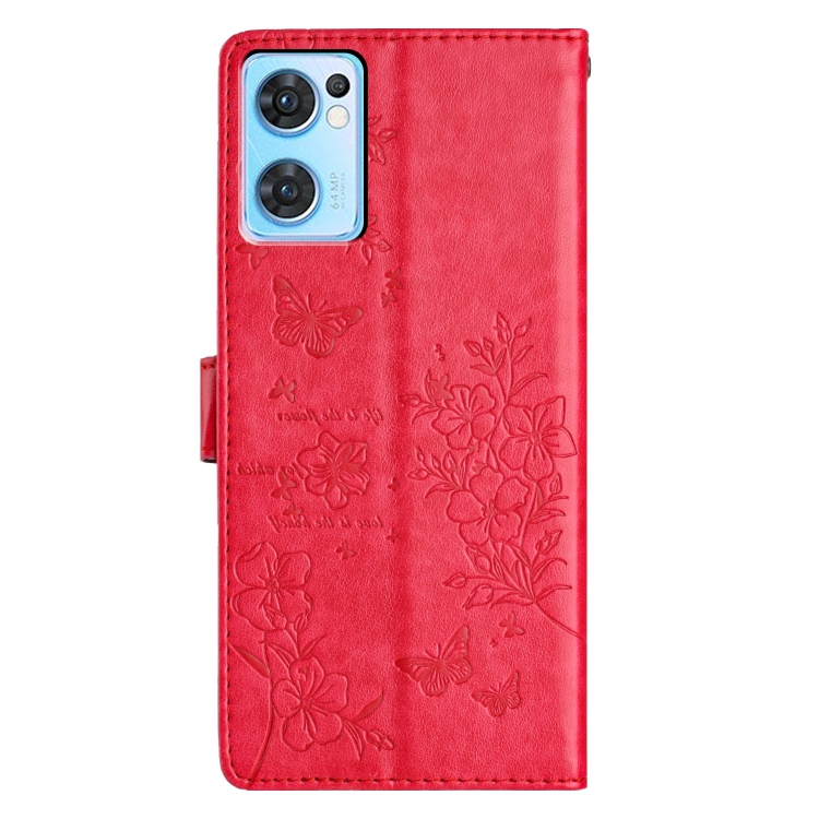 Para Oppo Find X5 Lite Funda para Teléfono de Cuero con Relieve de Flor de Amor y Mariposa (Rojo)