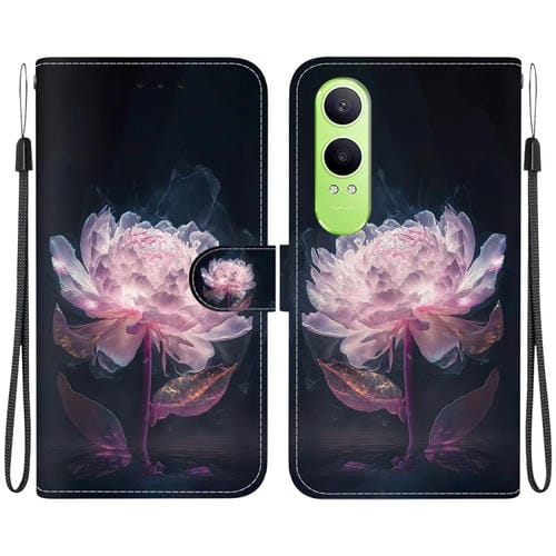 Para Oppo K12X Funda de Cuero para Teléfono con Dibujo Coloreado con Textura de Cristal (Peonía Púrpura)