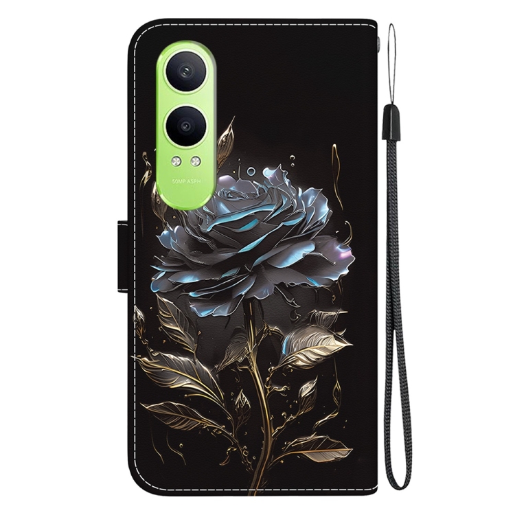 Para Oppo K12X Funda de Cuero para Teléfono con Dibujo Coloreado con Textura de Cristal (Rosa Negra)