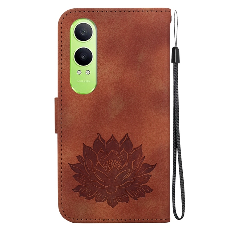 Para Oppo K12X Lotus Funda de Cuero En Relieve para Teléfono (Marrón)