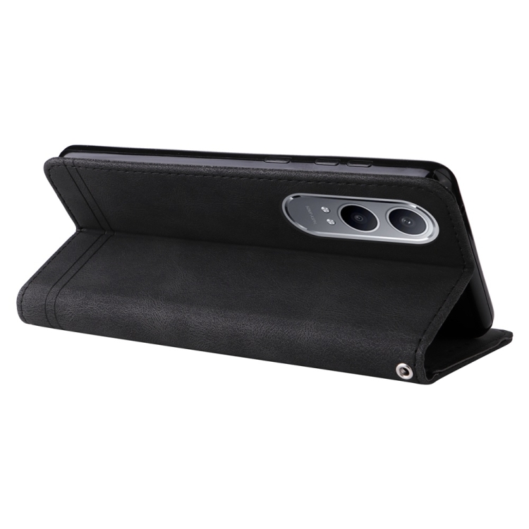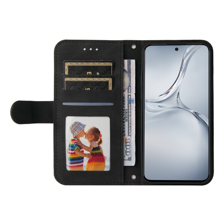 Para Oppo K12X Skin Feel Life Tree Funda de Cuero para Teléfono con Botón de Metal (Negro)