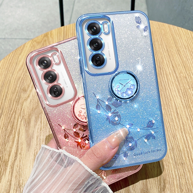 Para Oppo Reno 12 Pro Global Gradient Glitter Immortal Flower Ring Funda para Teléfono con Todo Incluido (Azul)