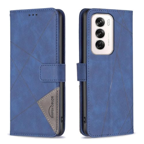 Para Oppo Reno12 Funda de Teléfono de Cuero con Textura de Rombo con Hebilla Magnética Global (Azul)