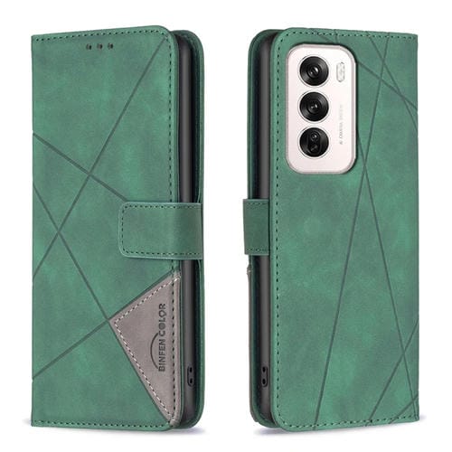Para Oppo Reno12 Funda de Teléfono de Cuero con Textura de Rombo con Hebilla Magnética Global (Verde)