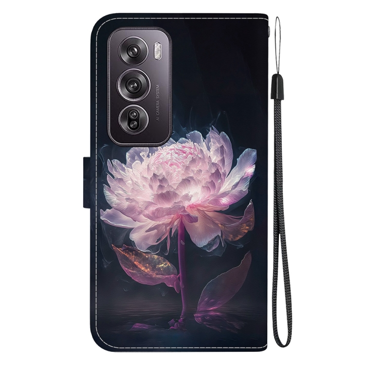 Para Oppo Reno12 Pro 5G Funda de Teléfono de Cuero con Dibujo Coloreado con Textura de Cristal Global (Peonía Púrpura)