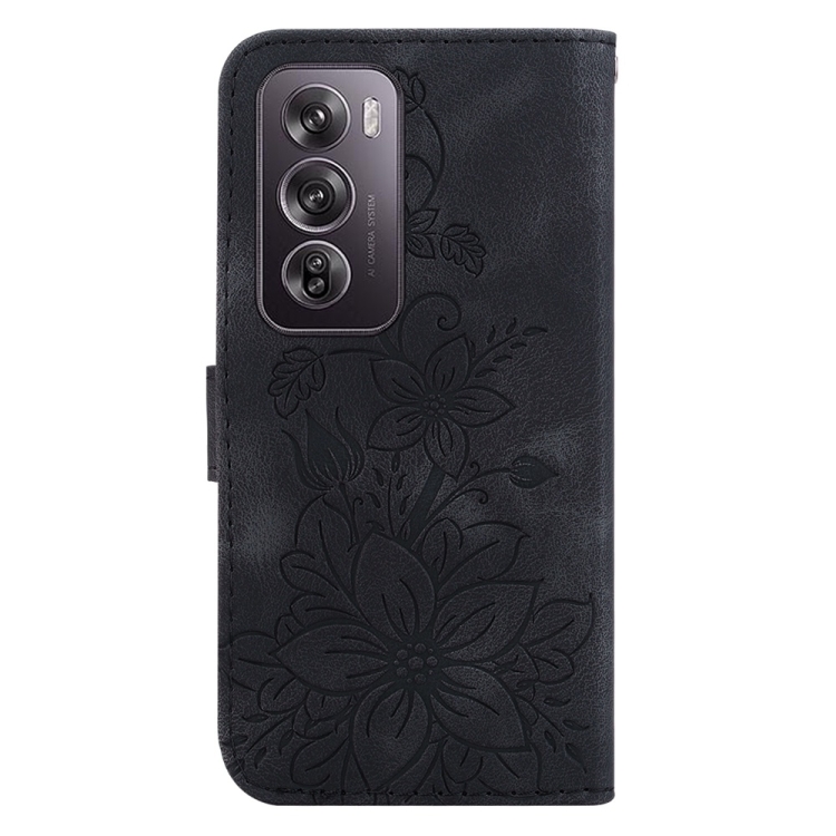 Pour OPPO Reno12 Pro 5G Global Lily Étui de téléphone en cuir gaufré (Noir)