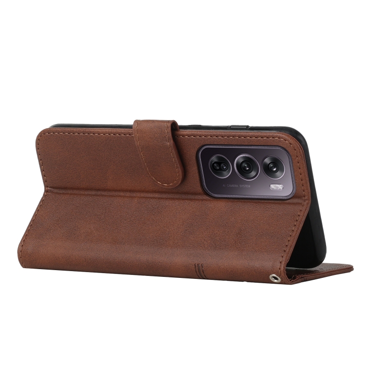 Para Oppo Reno12 Pro Funda de Teléfono de Cuero con Hebilla y Textura de Pantorrilla con Costura Global (Marrón)