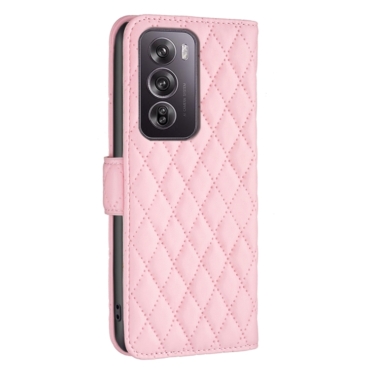 Para Oppo Reno12 Pro Global Diamond Lattice Wallet Funda de Cuero para Teléfono con Tapa (Rosa)