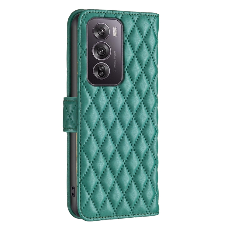Para Oppo Reno12 Pro Global Diamond Lattice Wallet Funda de Cuero para Teléfono con Tapa (Verde)