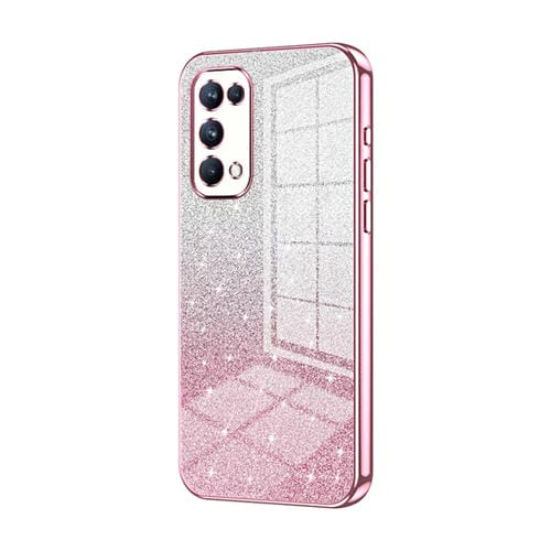 Para Oppo Reno5 Pro Estuche para Teléfono Galvanizado con Polvo de Brillo Degradado (Rosa)