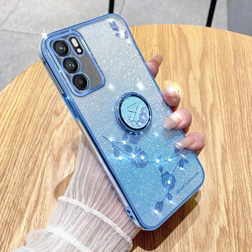Para Oppo Reno6 Z Estuche para Teléfono con Todo Incluido con Anillo de Flor Inmortal con Brillo Degradado (Azul)