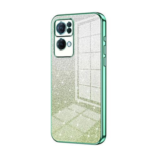 Para Oppo Reno7 Pro Estuche para Teléfono Galvanizado con Polvo de Brillo Degradado (Verde)