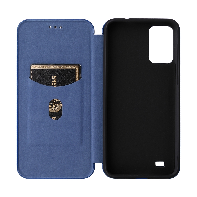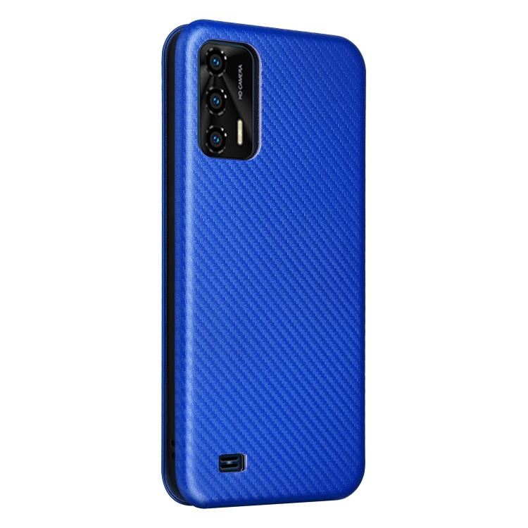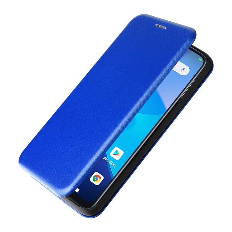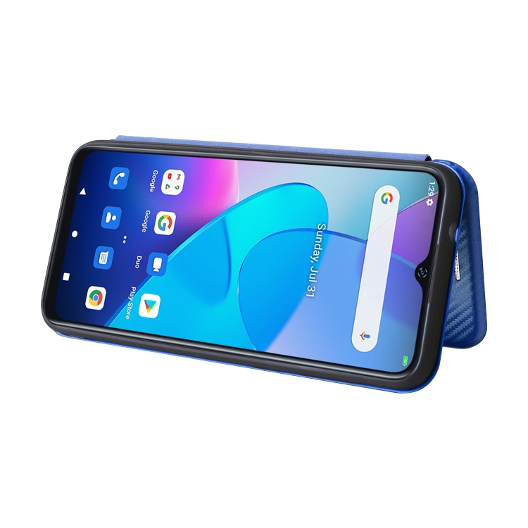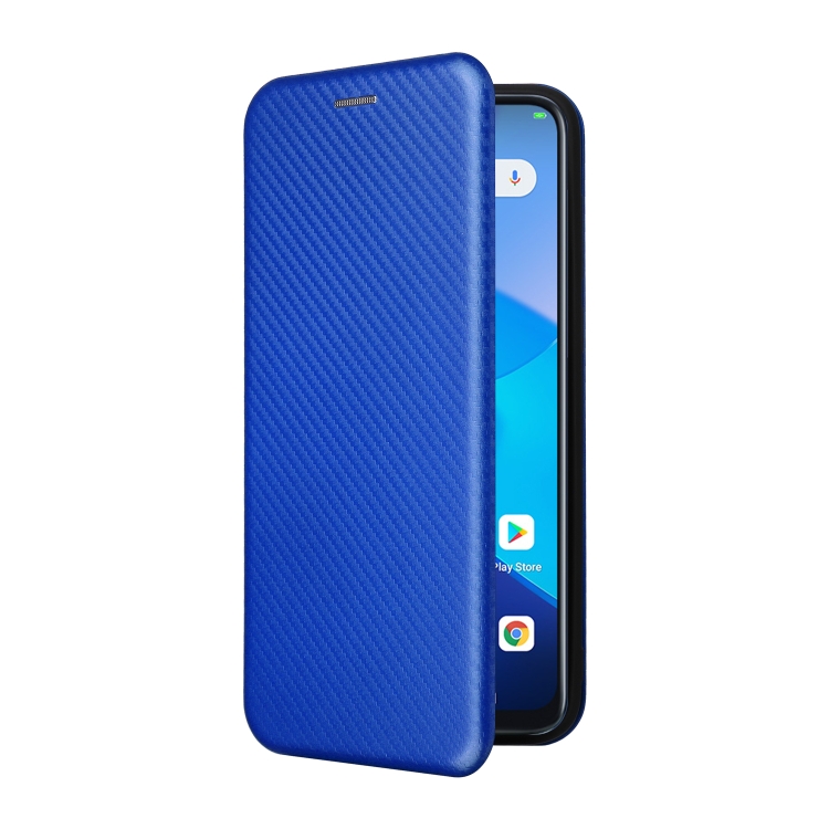 Funda de Cuero para Oukitel C31 con Textura de Fibra de Carbono (Azul)