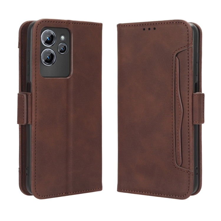 Funda de Cuero para Oukitel C32 con Textura Skin Feel y Ranuras para Tarjetas (Marrón)