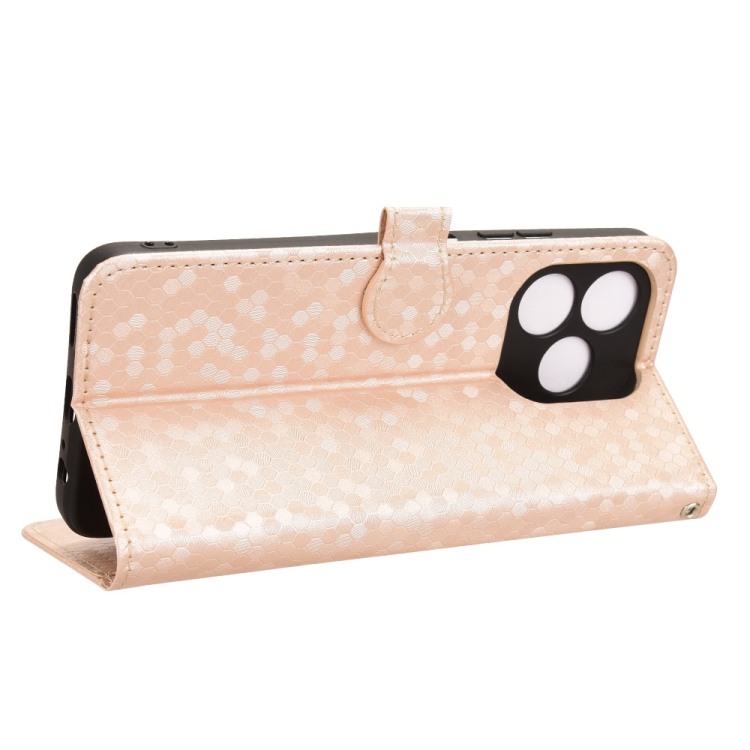 Funda de Cuero para Oukitel C51 con Textura Punto de Panal (Dorado)