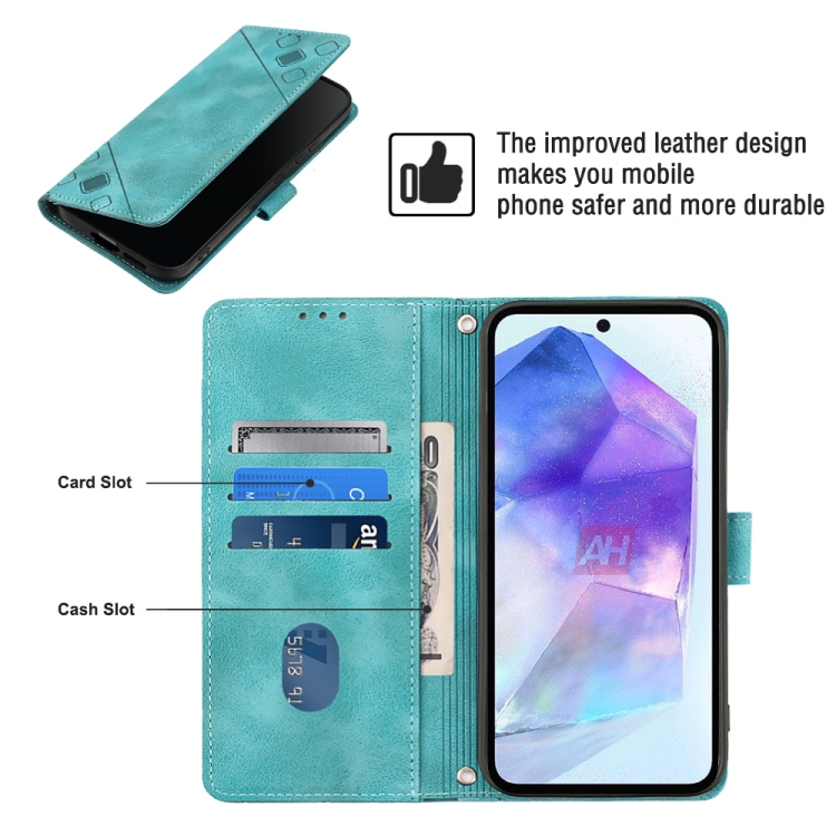 Funda para teléfono Samsung Galaxy A55 Cuero en relieve con sensación de piel (Verde)