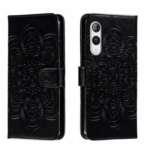 Funda de Cuero para Rakuten Hand 5G con Patrón en Relieve (Negro)