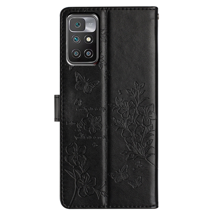 Para Redmi 10 2022 Funda de Cuero para Teléfono con Mariposas y Flores (Negro)