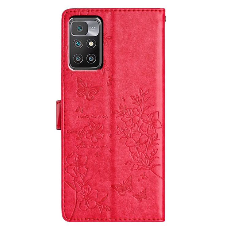 Para Redmi 10 2022 Funda de Cuero para Teléfono con Mariposas y Flores (Rojo)