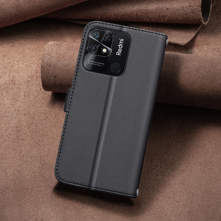 Para Redmi 10C Funda de Cuero con Textura Cuadrada (Negro)