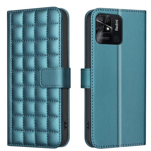 Para Redmi 10C Funda de Cuero con Textura Cuadrada (Verde)