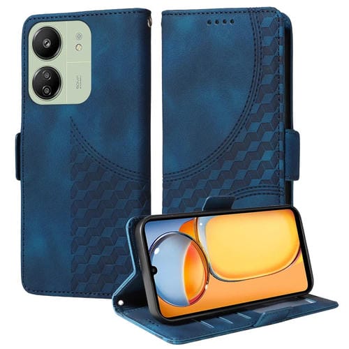 Para Redmi 13C 4G / 5G / 13R Funda para Teléfono de Cuero Estrellado con Rombos En Relieve (Azul)