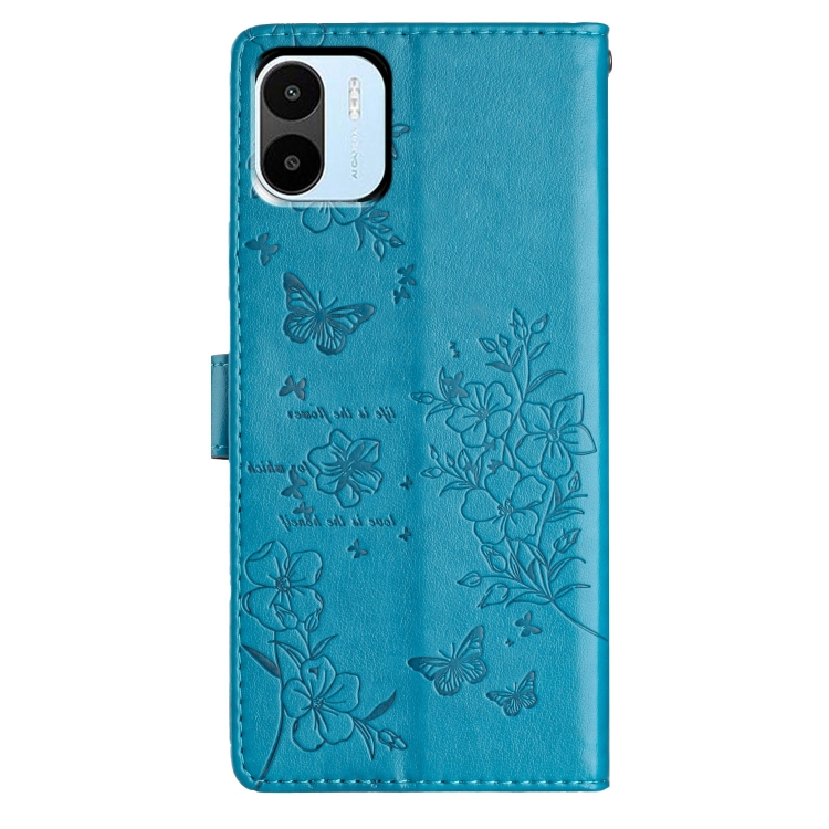 Para Redmi A1 Funda de Cuero para Teléfono con Mariposas y Flores (Azul)