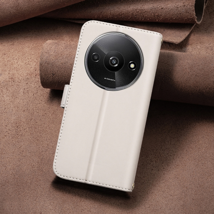 Para Redmi A3 Funda de Cuero con Textura Cuadrada (Beige)