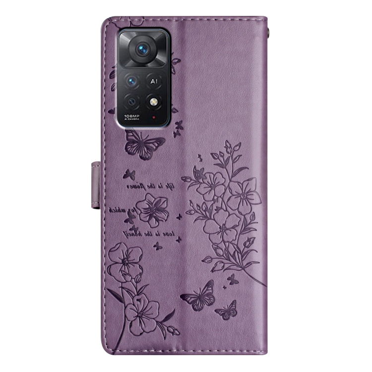 Para Redmi Note 11 Pro 5G Funda de Cuero para Teléfono con Mariposas y Flores Globales (Púrpura)