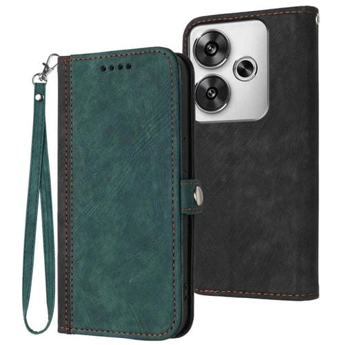 Para Redmi Turbo 3 / Xiaomi Poco F6 Funda de Cuero para Teléfono con Correa de Mano con Doble Pliegue y Hebilla Lateral (Verde Oscuro)