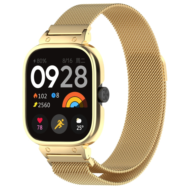 Para Redmi Watch 5, caja de reloj con marco de metal, correa de reloj de malla de acero magnética de Milán integrada (dorado)