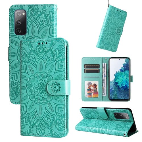 Estuche para Teléfono Samsang Galaxy S20 FE Cuero Estampado Girasol (Verde)