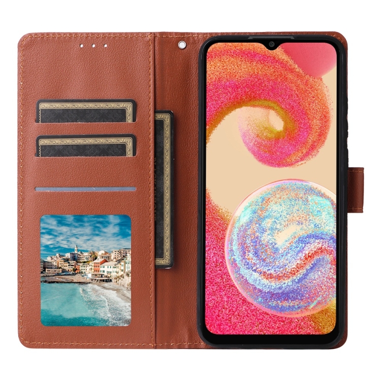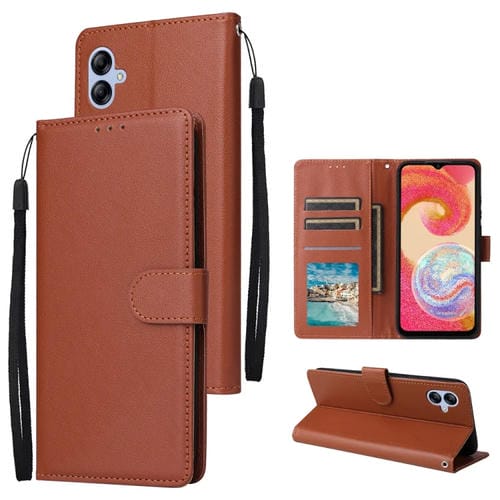 Funda de Cuero Samsung Galaxy A04E Multifuncional con 3 Ranuras para Tarjetas (Marrón)