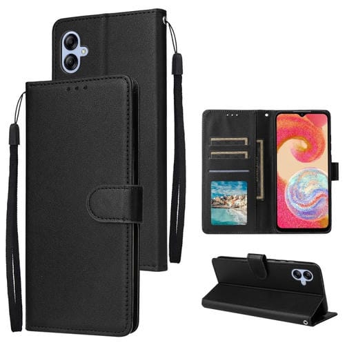 Funda de Cuero Samsung Galaxy A04E Multifuncional con 3 Ranuras para Tarjetas (Negro)
