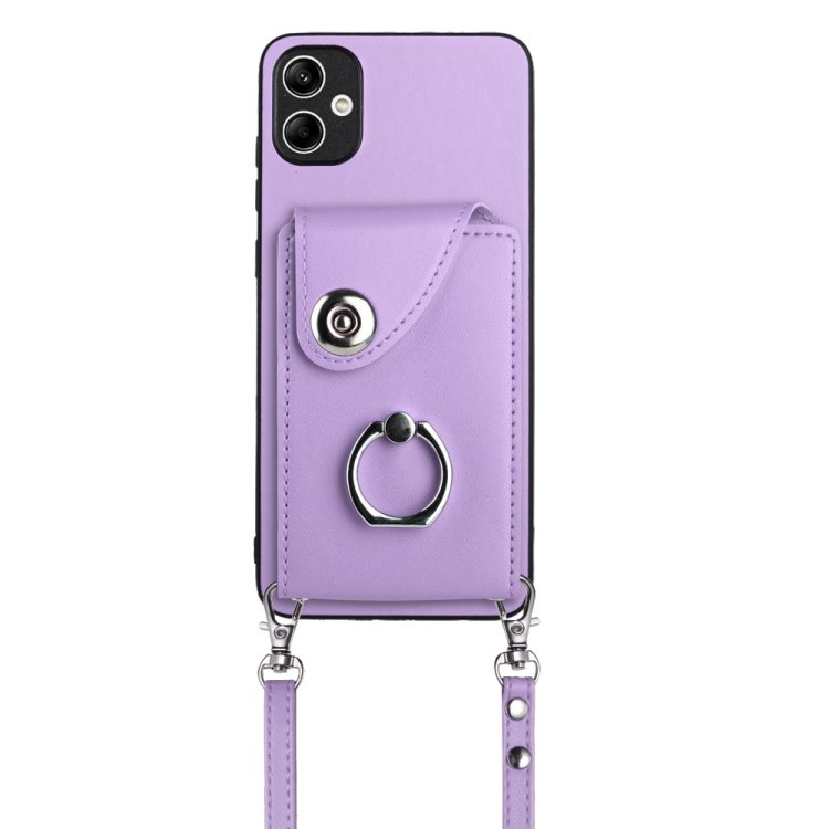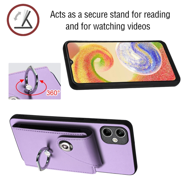 Funda para Teléfono Samsung Galaxy A04E M04 F04 4G con Soporte para Anillo Bolsa para Tarjeta y Cordón Largo (Púrpura)